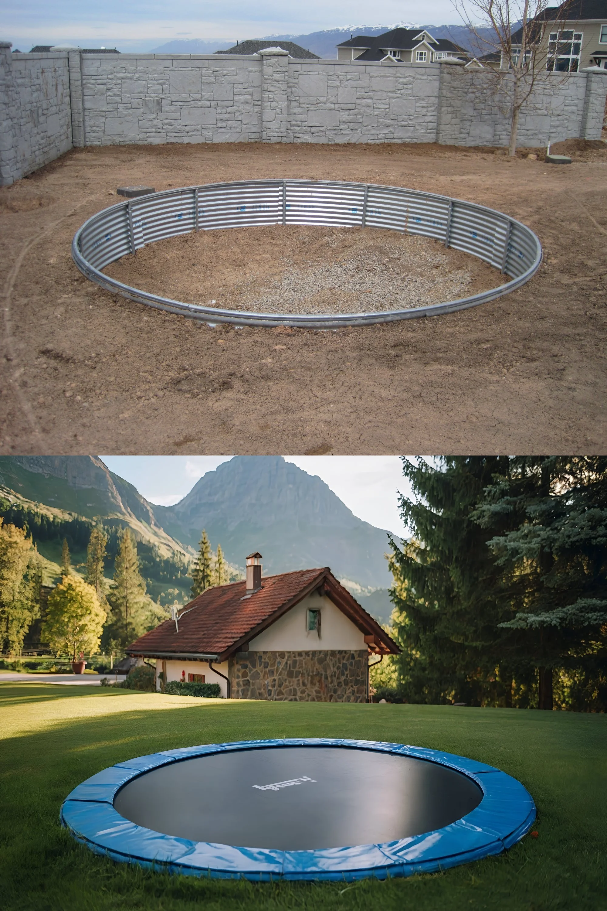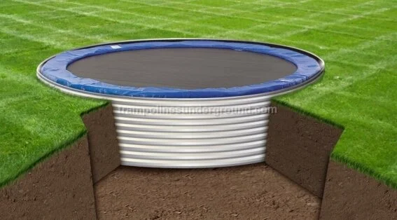 My kids love their in-ground trampoline! We decided to put an Olympic rectangle trampoline in our back yard, but wanted it to be ground level so that it was safe for our kids.  We got our retention system from Rocky Mountain Trampoline Rings and it has worked great.  We have had it in our yard for three years and it still looks as good as the day it was installed.