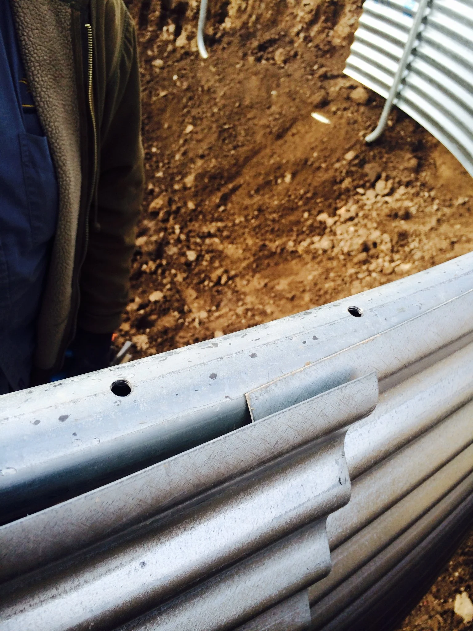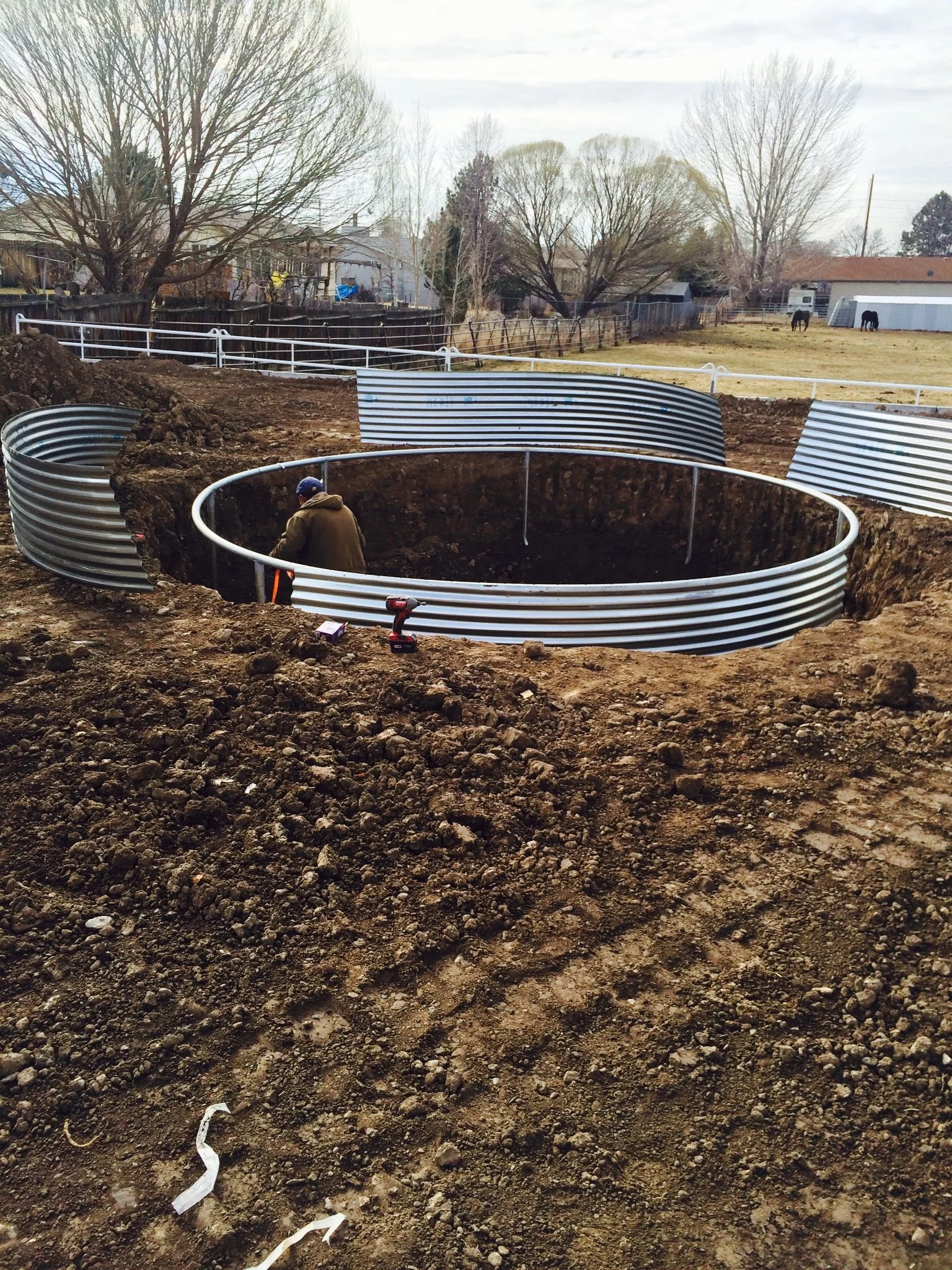 Place the trampoline frame into the excavated hole so that the top bar of the trampoline frame is level with the ground.